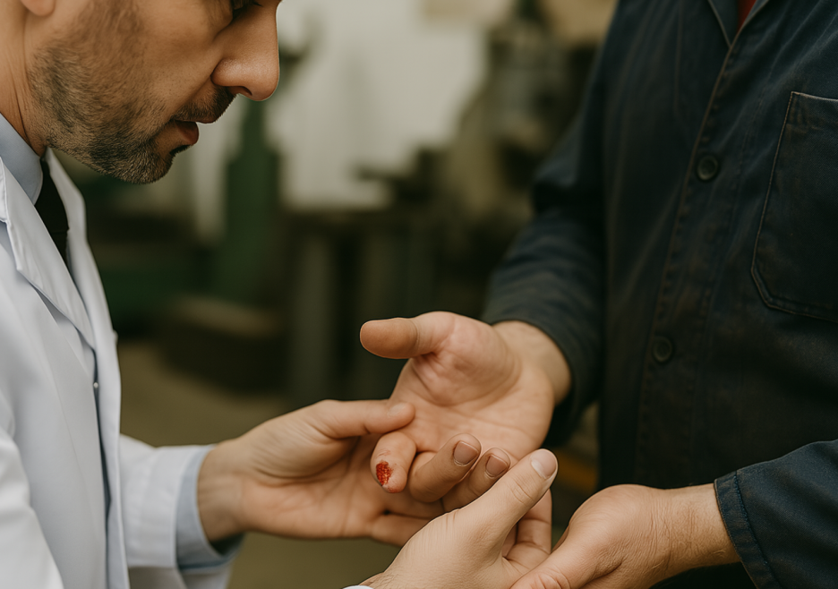 가장 흔한 발생 원인으로는 공장에서 일하다가 낙하물에 맞거나 금속 조각에 베이는 사고, 롤러나 프레스 기계에 손가락이 끼이면서 발생하는 압궤손상, 그리고 절단장비에 의한 손목이나 손가락 절단사고 등이 있습니다. 이러한 사고는 순간의 부주의로도 발생할 수 있어 더욱 안타까운 경우가 많습니다.